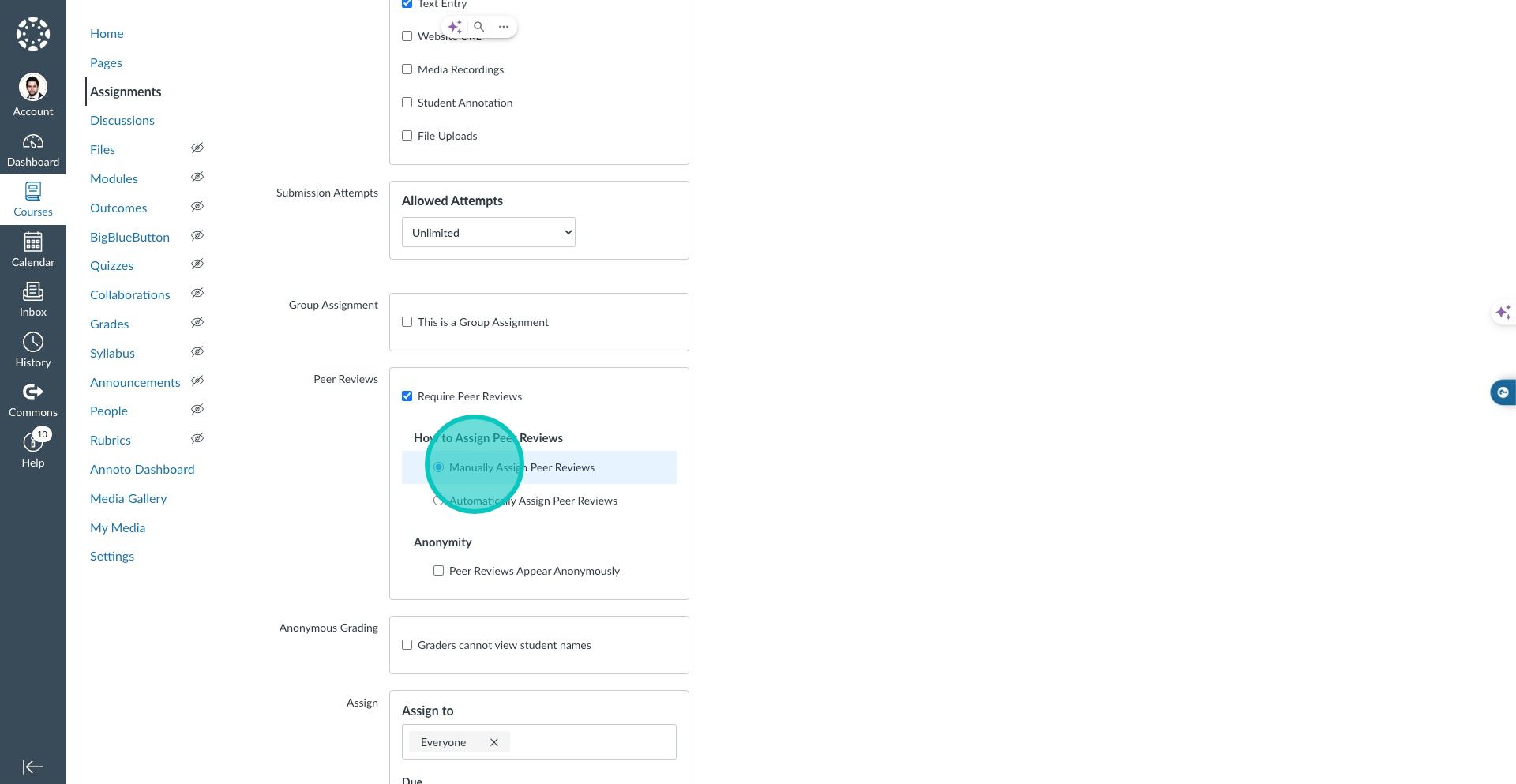 7. In this example, we will utilize the Manual Assign Peer Review option.