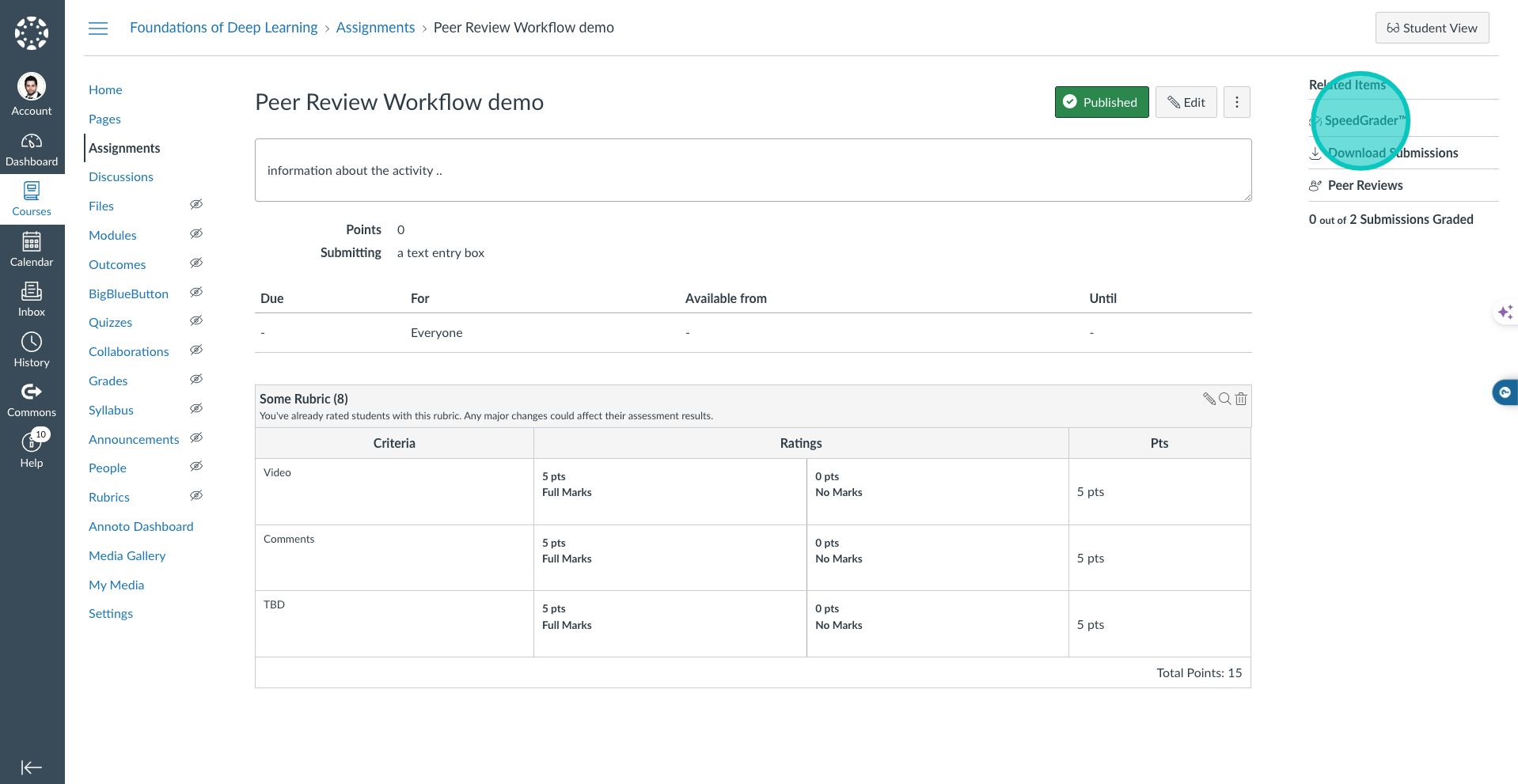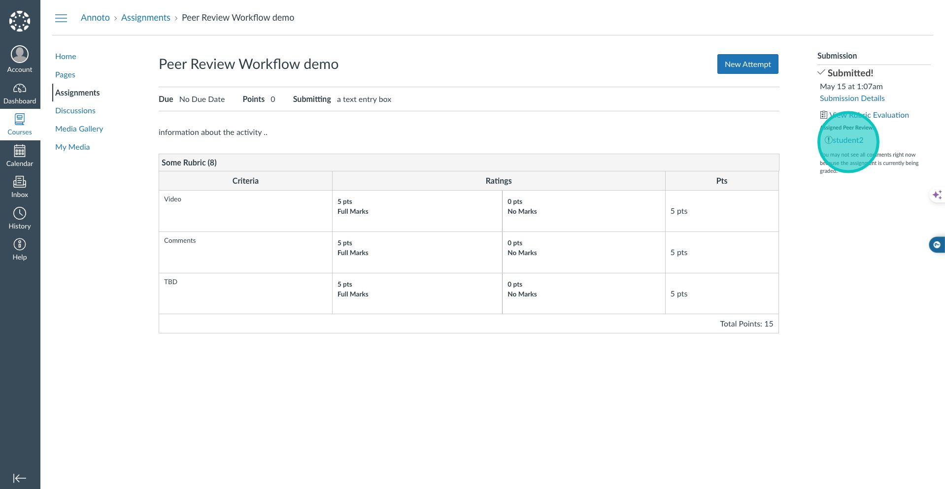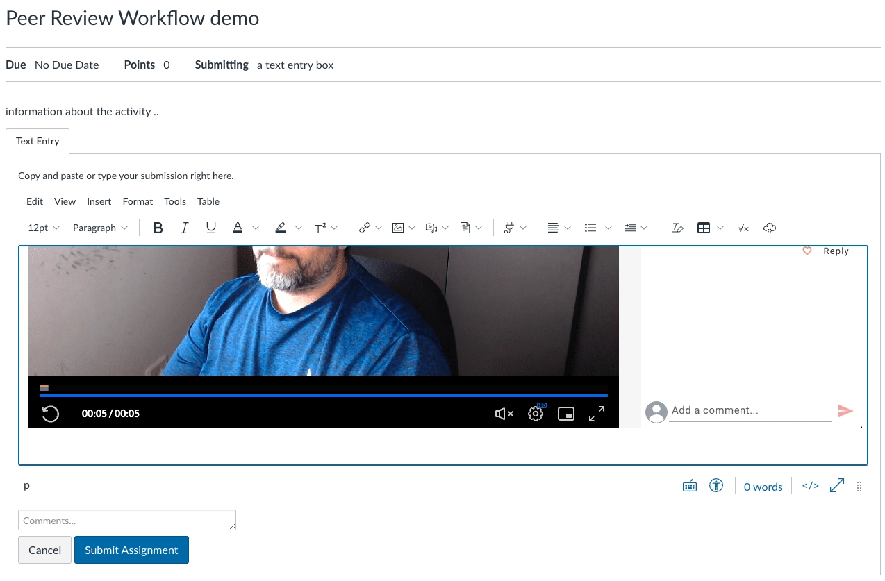 In this brief demonstration, we will show you how to create a peer review process using a video that a student has submitted.