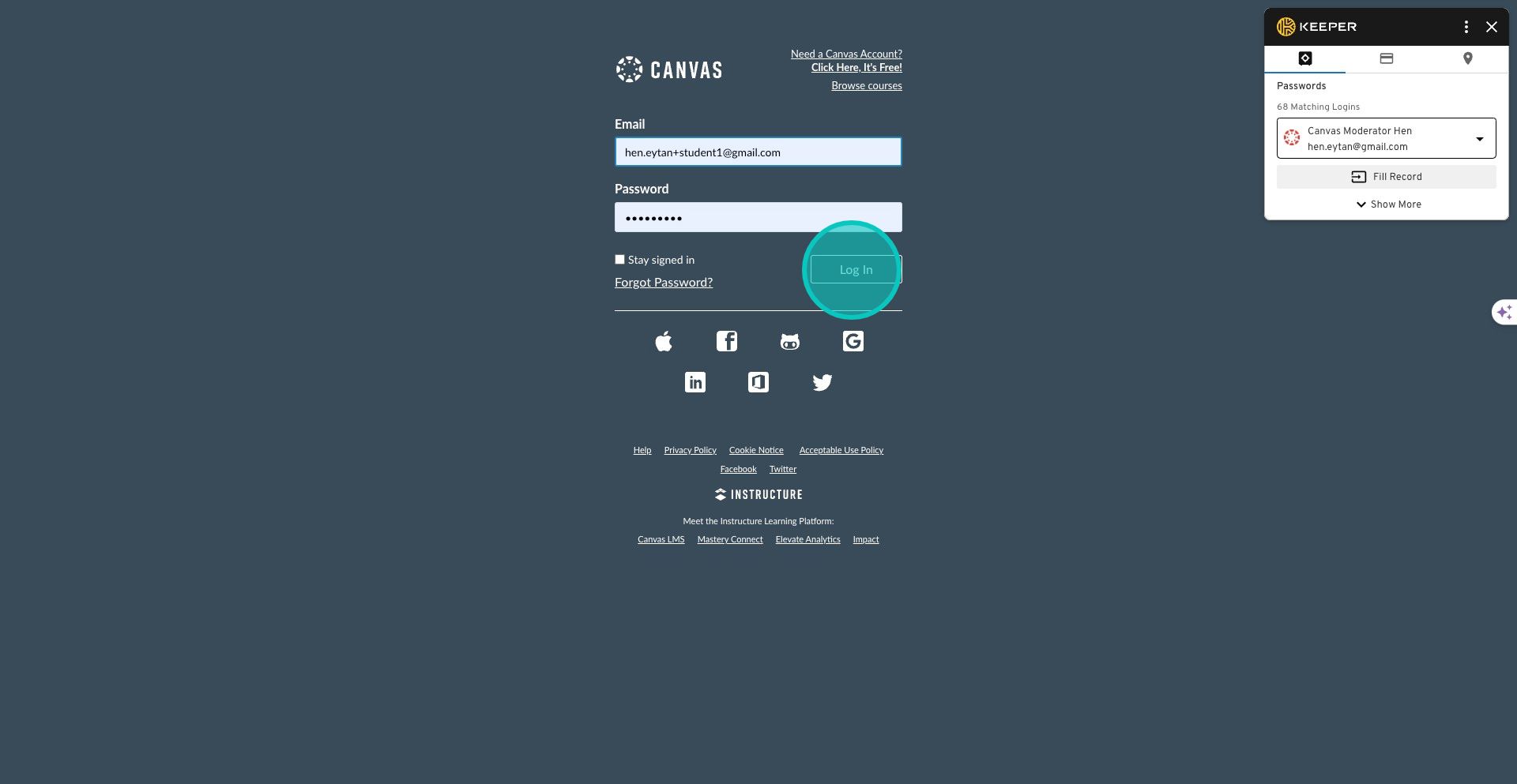 12. We'll log in as student 1 to submit the assignment.