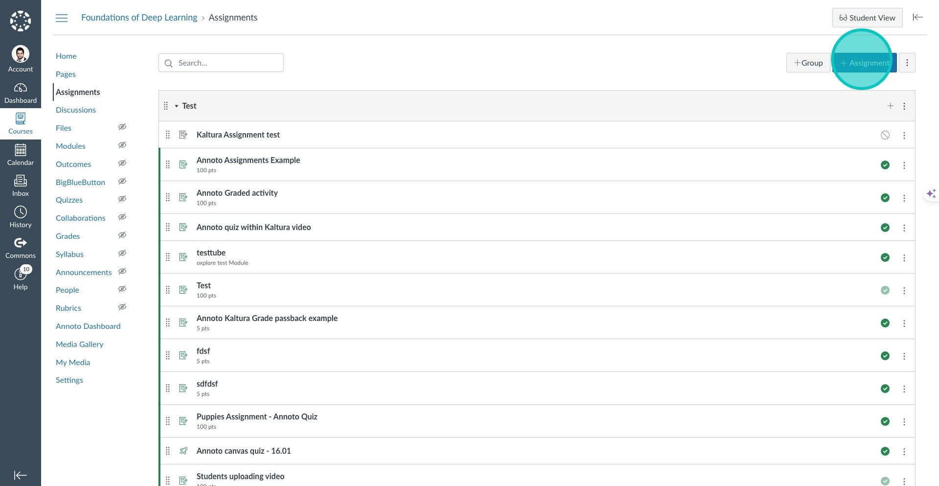 Click on the "+ Assignment" button to create a new assignment.