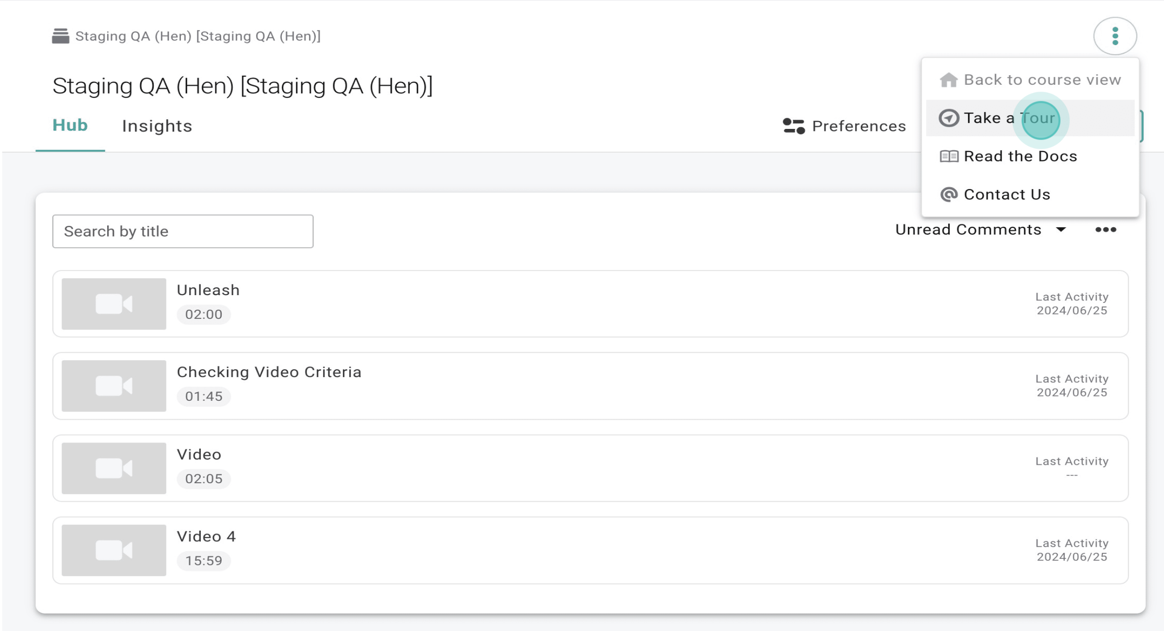 Instructors and students can retake the DAP anytime by clicking on the Annoto menu and then on the "Take a tour" button.